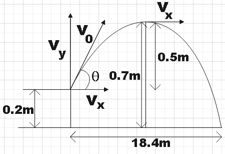 In the question we have the distance between pitchers mound and home plate given as 18.4m and we are told that the mound is 0.2m above the eld’s level. The initial velocity of the ball is given as 37.5m/s and it is also known to cross a plate that is at a height of 0.7m above the ground. We are asked to find the angle of the projectile neglecting air resistance using this information.