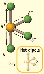 For \[H = 5\] , the hybridization would be \[s{p^3}d\] , so the geometry of \[\;S{F_4}\] is Trigonal bipyramidal. In this case, the central atom chlorine has 4 bond pairs and 1 lone pair, therefore, the shape is a see-saw. Due to this shape, it has a permanent dipole moment. The structure is shown below,
