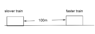 Let the least retardation applied on the faster train be $a$. Let the faster train come to rest after $ts$ pulling the break. In this time the slower train moves a distance, as the separation between them is $100m$ the faster train moves extra $100m$ in that time.
