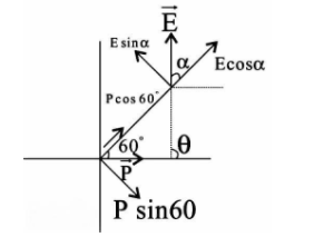 Now, the electric dipole and the electric field vector are resolved into the two components.