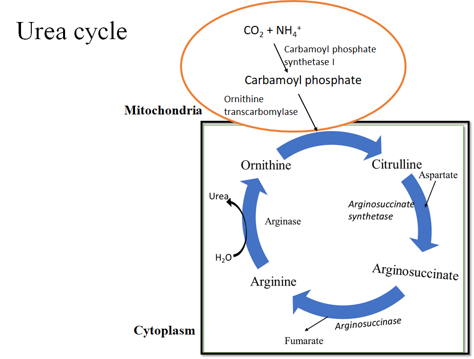 Note: In rare disease, genetic defects in the enzymes required in the cycle can occur which generally reveal within a few days of birth. The newly born child will generally experience varying periods of emesis and bouts of lethargy. Ultimately the newborn may slip into a coma and evolve into brain damage.