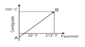 Let us consider the given graph of the temperature of a body in degree Celsius and degree Fahrenheit as,