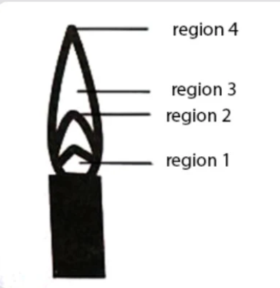 There are three zones in the Bunsen burner flame- Inner zone, middle zone and the outer zone.