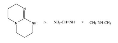 In option (b),there are three electron donating nitrogen groups containing lone pair of electrons which are not neither in conjugation nor in resonance with the each other and hence it has the highest basic strength among all and has the largest ${{K}_{b}}$ value.