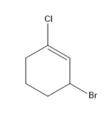 Thus, the IUPAC name of the given structure is $ 3 - Bromo - 1 - chlorocyclohex - 1 - ene $