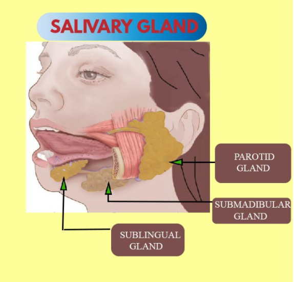 Additional Information: Except for parotid, there are two other salivary glands named, submandibular and sublingual glands.