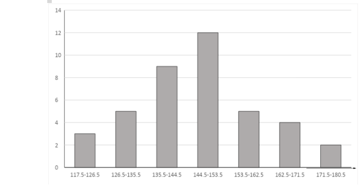 Length in mm Number of leaves 118-126 3 127-135 5 136-144 9 145-153 12 154-162 5 163-172 4 172-180 2