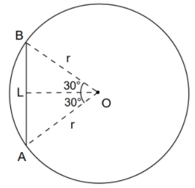 From the figure, we can see that $\dfrac{L}{2}=r\sin {{30}^{\circ }}$. Because $\dfrac{L}{2}$ is the opposite side and r is the hypotenuse side of the angle ${{30}^{\circ }}$.