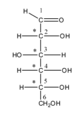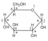 In this structure, we can see that there are five chiral centres C-2, C-3, C-4, C-5 and C-6 marked by stars. These five carbons have four different groups attached to it. Hence, they are considered as chiral carbon.
