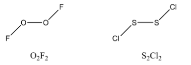 \[{O_2}{F_2}\] has the structure similar to \[{H_2}{O_2}\]. It has the shape of a half-open book (gauche in shape) \[{S_2}C{l_2}\] also has the shape similar to \[{O_2}{F_2}\].