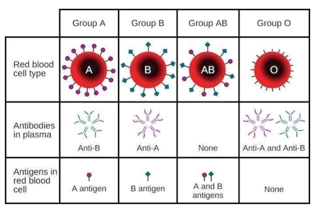 ABO blood type is an ideal example of co-dominance. For ABO blood group system of blood groups, allele A produces N-acetylgalactosamyl transferase enzyme which recognises H antigen present in RBC membrane and adds N-acetylgalactosamine to sugar a part of H antigen to make A antigen. The allele IB produces galactosyl transferase enzyme which adds galactose to sugar a part of H-antigen to make B antigen. Alleles 14 and 15 produce a rather different sort of sugar, while allele i don’t produce any sugar or antigen. IA and i are completely dominant over i, in other words when IA and i are known to occur only if IA expresses, as i don’t produce any sugar, and when IB and i are present, only 1B expresses. When both IA and i are present, both enzymes or sugars both antigens A and B are produced, which is often due to codominance. These antigens determine the sort of blood type. Blood type A has antigen A, B has antigen B, AB has both antigens, while blood type O doesn't carry any antigen. So, the child can have blood type A or B which differs from parents.