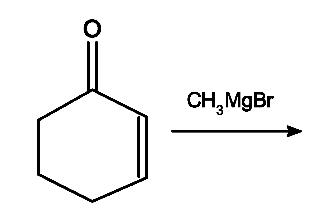 - Here, the carbon double bond shifts on the oxygen atom and generates a positively charged carbon atom. In the next step the methyl group of the Grignard reagent $\text{ C}{{\text{H}}_{\text{3}}}\text{MgBr }$ attacks on the positively charged carbon atom. The methyl group is added to the electron-deficient carbon atom. In the next step water molecules attack on the oxygen atom such that the oxygen atom abstracts a hydrogen atom from the water molecules. This results in the formation of 1-methylcyclohex-2-enol.