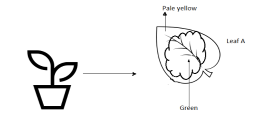 What will be the result of the starch test performed on the leaf “A” shown in the diagram? Give an example of a plant with variegated leaves.