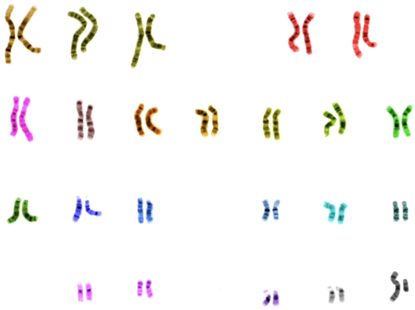 Chromosomes are thread- like structures and carry hereditary information. Chromosomes are made up of protein and one molecule of DNA that contains genetic information that is passed from the parent to the offspring. Humans have 23 pairs of chromosomes. That is a total of 46 no. of chromosomes. The 1 to 22 pairs of a chromosome are called autosomes.