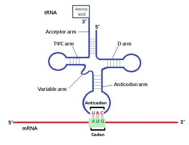 Note: Clover leaf model of tRNA was given by Robert Holley. According to this model, apart from the four arms discussed above there is an extra arm which is very short and known as variable arm. The function of this arm is to recognize the specific enzyme required for the activation of the tRNA.