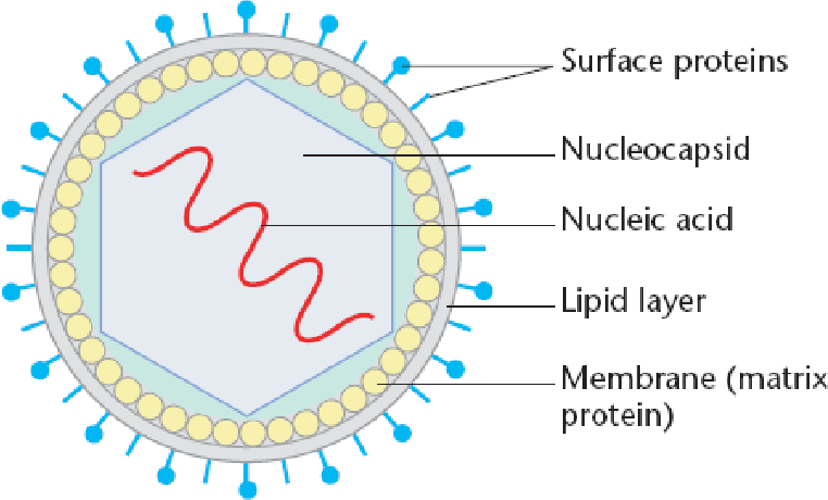Hint: A virus is made up of a DNA or RNA genome inside a protein shell called a capsid. Some viruses have an external membrane envelope.