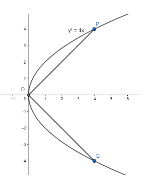 Through the vertex of the parabola\[{{y}^{2}}=4x\]chords\[OP\]and\[OQ\]are drawn at