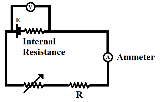 Similarly, with the help of Ohm’s law, the potential difference across the internal resistance is,