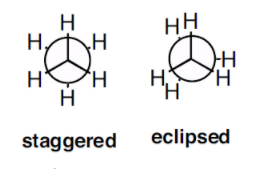 We can say that the torsional strain depends on the rotations around the central bond. For example let’s consider the staggered and eclipsed conformation of ethane.