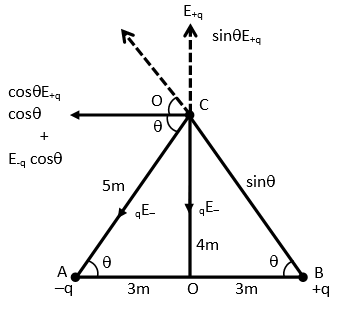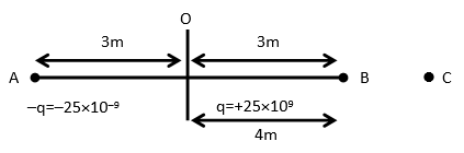 Then, ${E_{ + q}} = {E_{ - q}} = E = \dfrac{{9 \times {{10}^9} \times 25 \times {{10}^{ - 9}}}}{{5 \times 5}}$