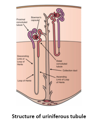 Its function is important for blood flow, blood pressure, and plasma osmolarity homeostasis It is used to filter the blood and isolate the liquid component from the blood. Water is also reabsorbed in the uriniferous tubule.
