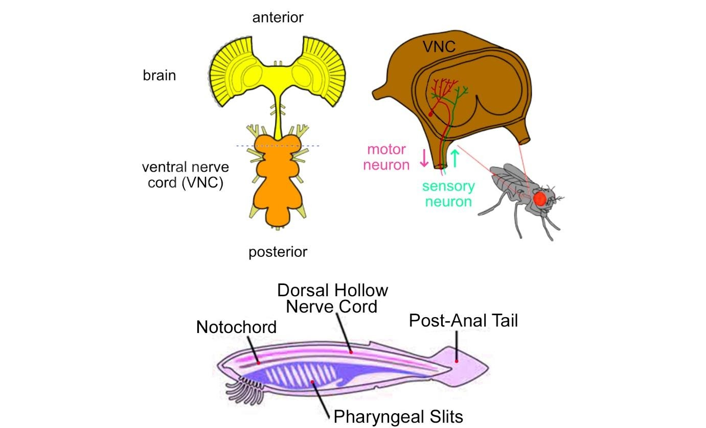 2. The ventral nerve cord (VNC) is the major structure of the invertebrate central nervous system. It is also the functional equivalent of vertebrate spinal cord. The VNC coordinates neural signalling from the brain to the body and vice versa. Thus, it helps in integrating sensory input and locomotor output which is why decapitated insects can still walk, groom and mate. VNC is sufficient to perform complex motor programs without brain input.