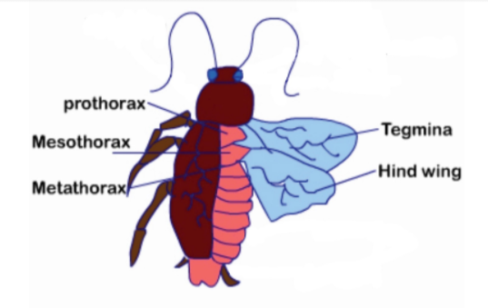 The Cockroaches belong to the order Blattodea, they are insects that are also called roaches. They have a pair of forewings called tegmina which are found in the mesothoracic segment. It is tough and acts as a protective layer covering the hind wings, it is used for flight.