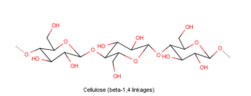 For example- Cellulose – it is made up of glucose units. These glucose units are held together by $\beta (1 \to 4)$ glycosidic bond.
