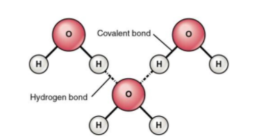 Water molecules have one oxygen atom and two hydrogen atoms. Two water molecules are held together by the hydrogen bonds. This is known as oxygen-hydrogen bonding. The hydrogen atom that has a plus end is associated with the oxygen atom that has a minus end. The liquid state of water and high solubility in water is due to the presence of hydrogen bonds.