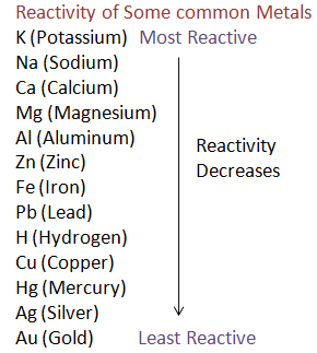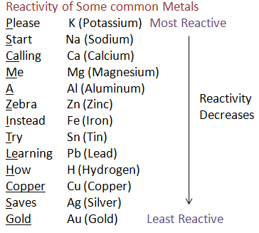 Note: An effective mnemonic device to help remember the reactivity order of metals is: