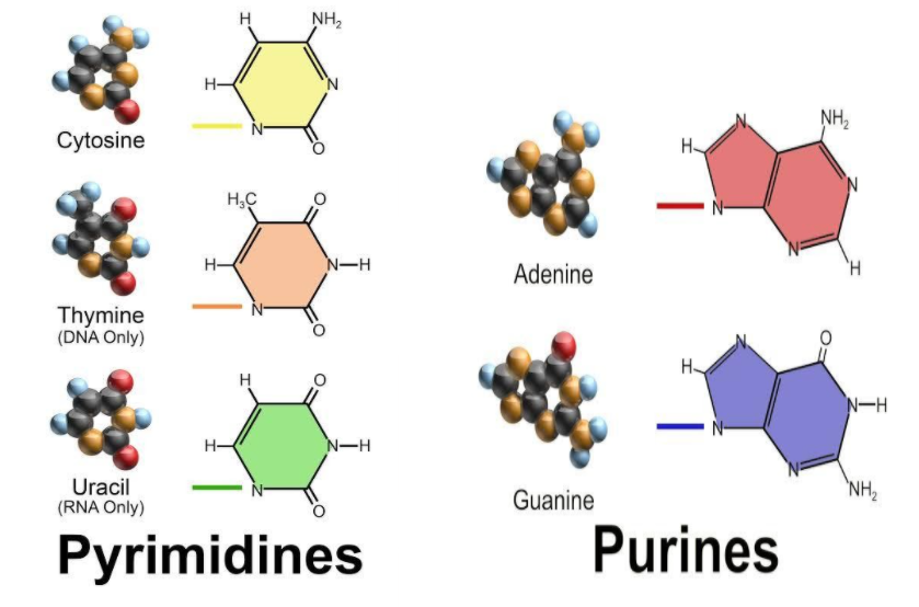 Note: It should be noted that these nucleotide bases are categorized as Purines and Pyrimidine and are different in DNA and RNA only on the sole principle of energy conservation.
