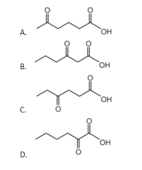 Here in the above question, all the options are keto acid. But the beta-acid is where the acid is two carbons away from the keto group. So when we look at them, option A is delta- keto acid, option C is gamma- keto acid, option D is alpha keto acid. But option B is beta-keto acid.