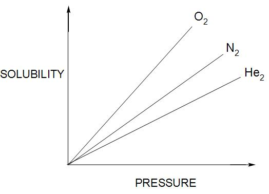 - Statement (D) is correct. Different gases have different ${{K}_{H}}$ (Henry’s law constant) values at the same temperature- If we compare three gases(oxygen, nitrogen and helium) then there solubility versus pressure graph will be like this:
