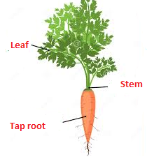 The carrot plants are small herbs like with soft and delicate stems. It has a long tap root system which is soft, less wood and has rich deposits of sugars like glucose, fructose and sucrose. It also has deposits of other essential minerals and nutrients. The root is orange red in colour due to the presence of β-carotene. The roots are the rich source of vitamin K and vitamin B6. The leaves are eaten by some animals and are believed to be toxic for human consumption. The part of the plant mostly eaten is the root.