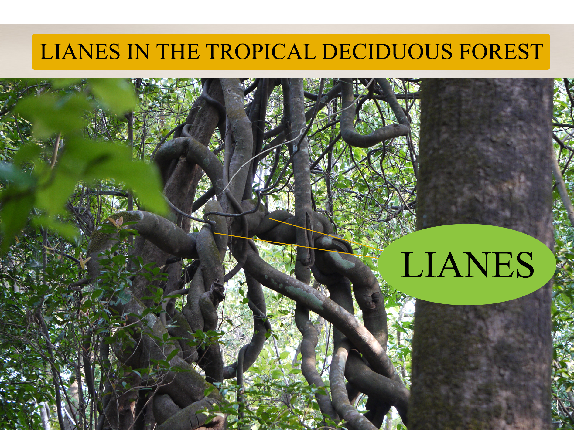 - Lianas are mainly the characteristic of tropical moist deciduous forests but can be found in temperate rainforests and temperate deciduous forests.