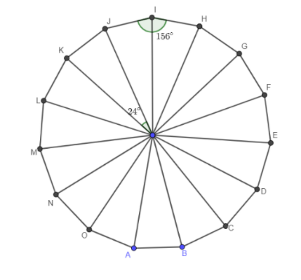 In the above figure that is 15-sided regular polygon, we have to find the interior angles of the polygon.