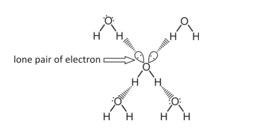 The above figure shows Hydrogen bonding in water (here the solid line denotes the covalent bond and dashes line denote hydrogen bonds)