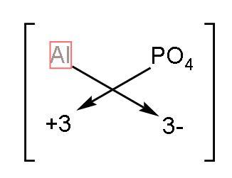 2) Aluminium phosphate: The symbol of Aluminium is $\text{Al}$ and phosphate is$\text{PO}_{4}^{3-}$ . The valency of aluminium is 3 as its configuration is $\left( 2,8,3 \right)$. The charge on phosphate is -3. Now using the crossing the charge method, the chemical formula will be