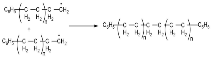Step (3): Chain terminating step: The product radical thus formed reacts with another radical to form the polymerized product and step is called the chain terminating step. In the termination step, these free radicals can combine in different ways to form polythene. One way of termination of chain is: