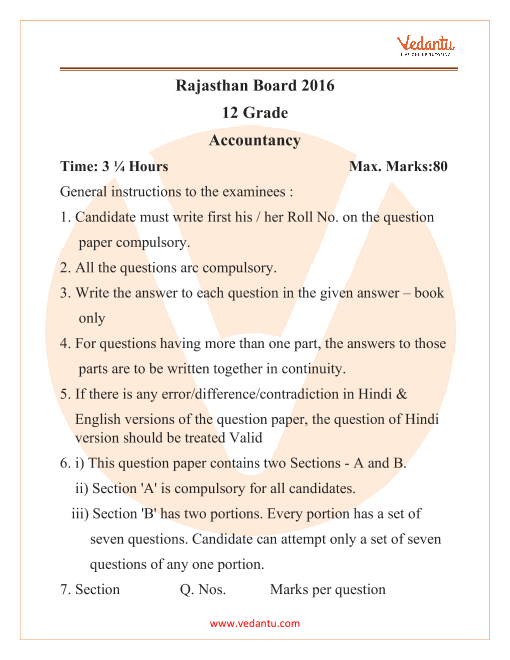 Class 12 Accountancy RBSE Question Paper 2016 - PDF Download