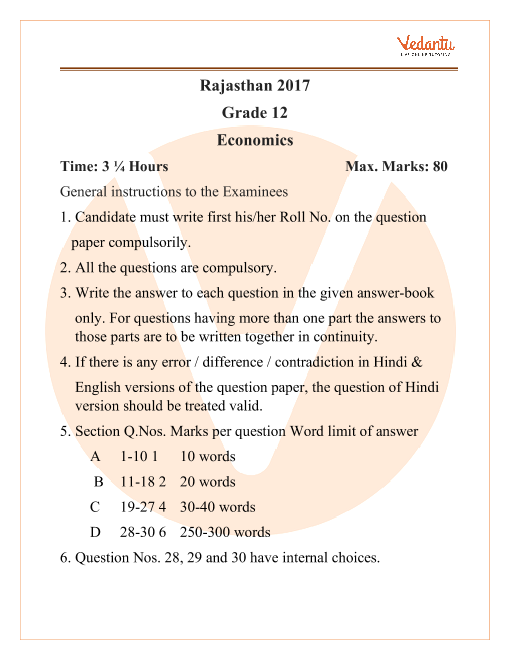 Class 12 Economics RBSE Question Paper 2017 - PDF Download