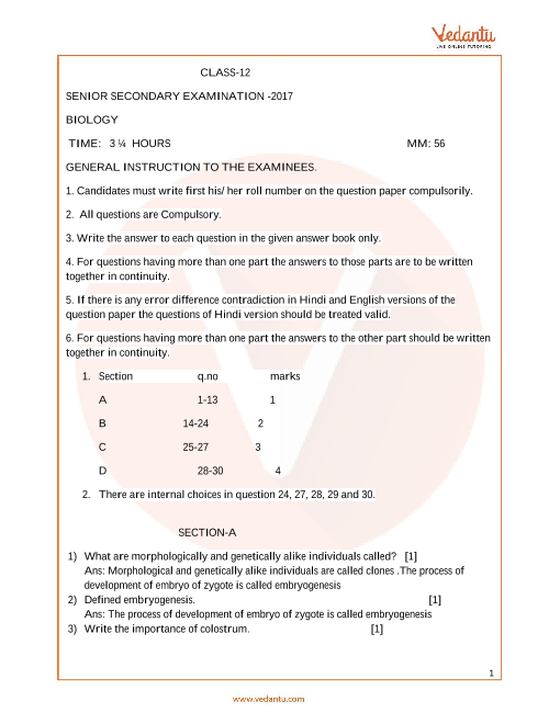 Rajasthan Board Biology Class 12 Question Papers 2017 with Solutions - Free PDF Download.