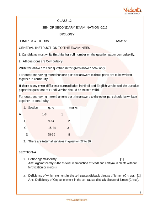 Rajasthan Board Biology Class 12 Question Papers 2019 with Solutions - Free PDF Download.