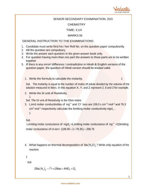 Vedantu is India's top learning website. Vedantu has the Rajasthan Board (RBSE) Question Paper for Class 12 Chemistry 2015, along with the solution PDF for free. The expert teachers of Vedantu prepare this solution. This solution is prepared by considering the level of students which helps the student to understand the problems easily.