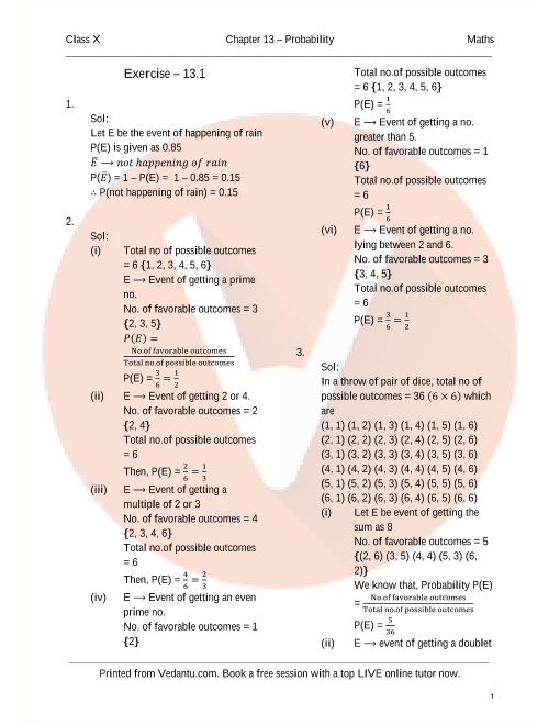 The simple way to get comfortable with the problems of probability is by solving as many questions as possible. After finishing the practice exercise given after every chapter try to solve more questions from the past year’s sample question paper provided on the website and mobile app of Vedantu?