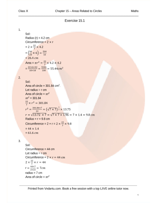 Areas Related to Circles (Ex 15.4) Exercise 15.4 - Free PDF