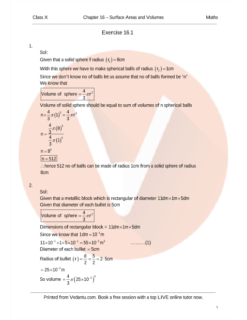 Download Free PDF of RD Sharma Class 10 Solutions Chapter 16 - Surface Areas and Volumes (Ex 16.1) Exercise 16.1