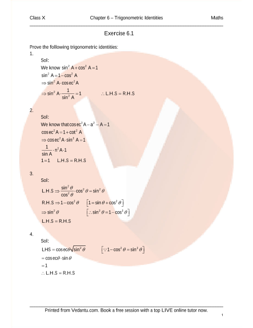 Class 10 Maths topic of Trigonometric Identities is a topic infamous for giving students a hard time. However, Vedantu has made it relatively easier for you by providing you free CBSE study material for various topics of Mathematics including Trigonometric Identities. You can refer to these materials for understanding Class 10 trigonometric identities. They have been prepared by our experts after a lot of research and are very student-friendly. They will surely make this particular topic a lot more fun for you.