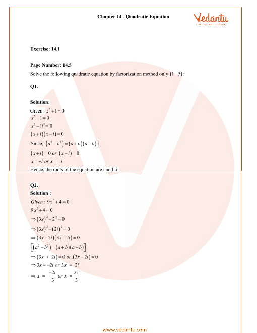 FAQs on RD Sharma Class 11 Solutions Chapter 14 - Quadratic Equations (Ex 14.2) Exercise 14.2