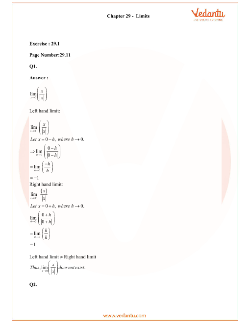 The RD Sharma Textbooks are considered as one of the top resources for CBSE board exam preparation. Students are required to go through RD Sharma Solutions for Class 11 Maths Chapter 29 - Limits thoroughly before the exams to score well and broaden their problem-solving abilities. After students have obtained a hold on the key concepts, students can move further with other study materials such as the sample papers and previous year question papers to get better acquainted with the exam pattern. Students can access multiple study materials for Class 11 Maths.